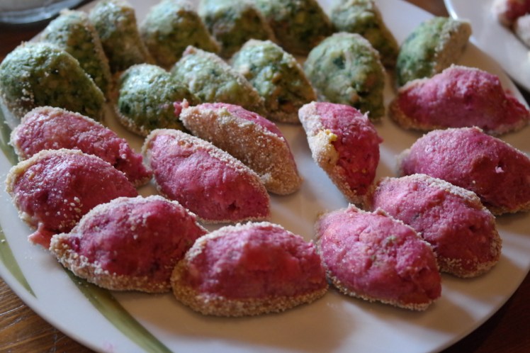 Da haben mich die schönen Farben der Knödel aus dem Tiefkühler wieder angelacht.