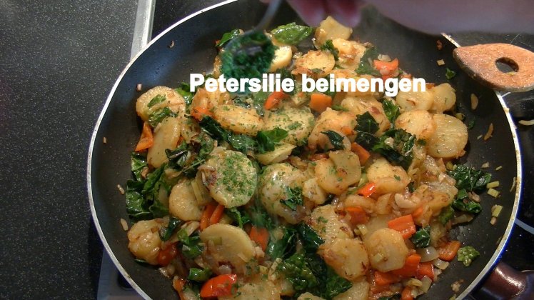 Bevor gleich nochmal die Chorizo in die Pfanne kommt sollte noch reichlich Petersilie untergemengt werden.