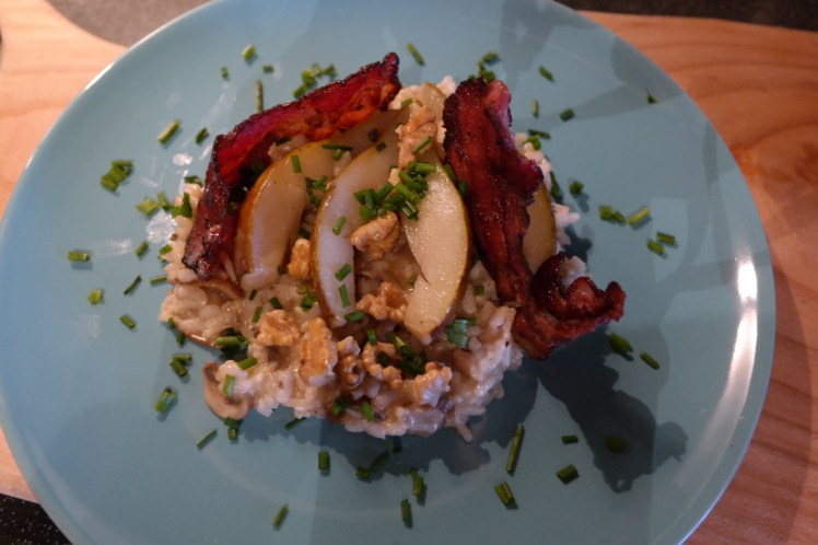 Diese Kombination aus, leckerem Risotto mit deftigem Bacon und karamellisierten Birnenspalten und Walnüssen hat es echt in sich.