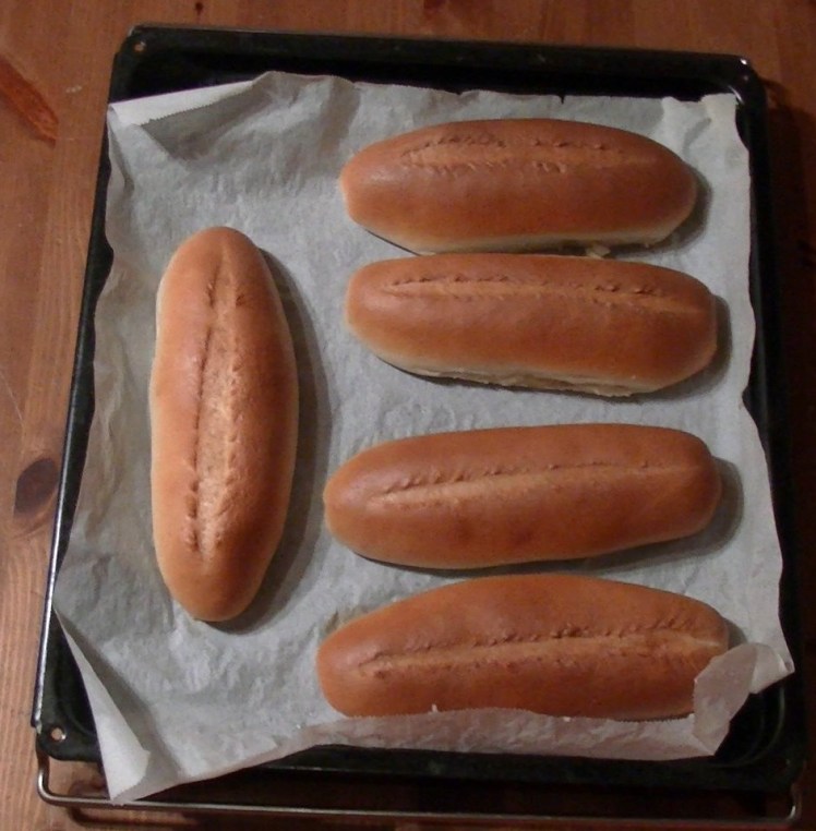 Danach raus aus dem Ofen und etwas abkühlen lassen und am besten gleich zu einem HotDog verarbeiten oder später nochmal etwas erwärmen.